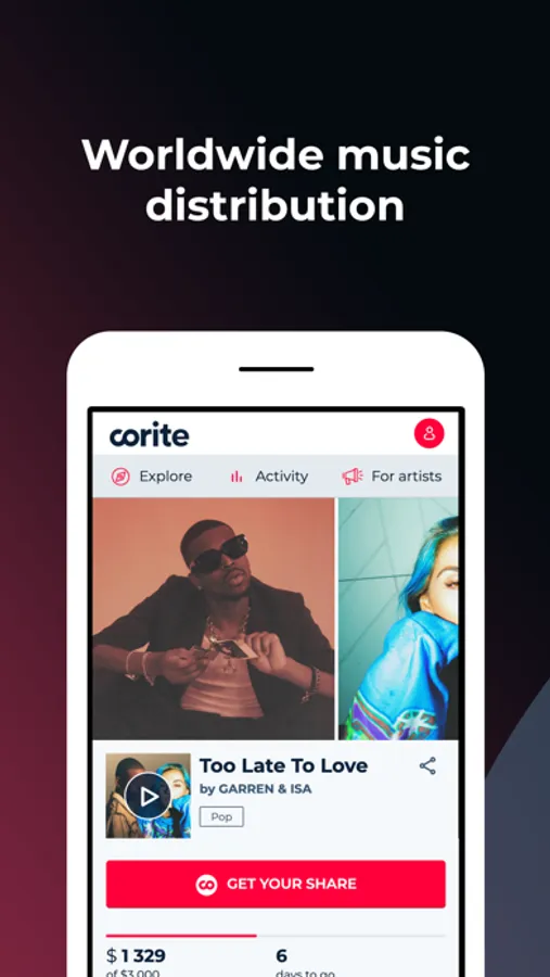 Corite is a fan funded marketing platform where artists and fans come together for a common goal. Artists release their music through Corite to all major music platforms. Fans make a contribution and get payback when it’s streamed, based on the size of their contribution and activity. Backing a campaign means supporting dreams, independent artists and contributing to a more transparent and sustainable music industry.