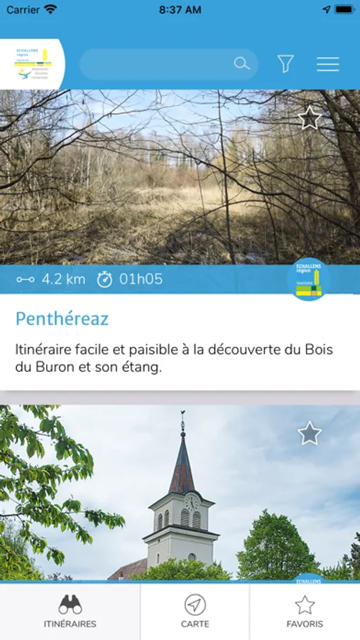 Cette application touristique gratuite trilingue (français, allemand et anglais) est proposée par les offices du tourisme de Moudon et Echallens Régions. Elle contient une vingtaine de randonnées pédestres dont une dizaine autour de Moudon et une dizaine dans les alentours d’Echallens, dans le Gros-de-Vaud. Elle répertorie également de nombreux points d’intérêt « nature », « patrimoine » et « culture » afin d’en apprendre davantage sur cette région pittoresque.