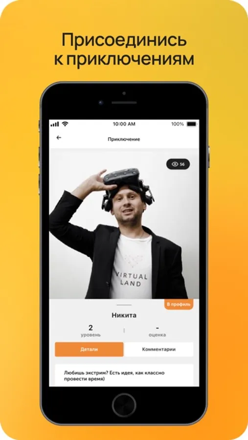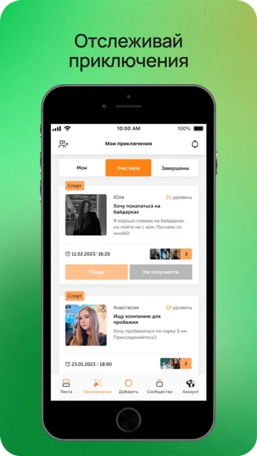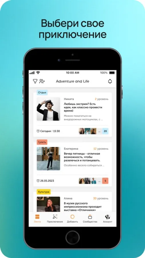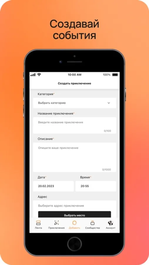 Приложение для молодых людей и девушек, где можно создавать и искать события для совместного развлечения (приключения).