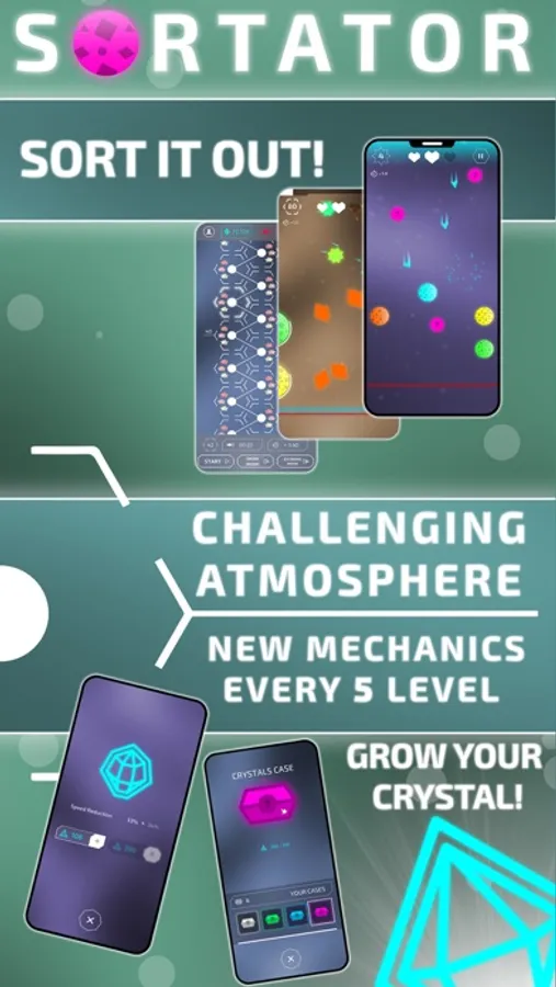 Sortator is fun, addictive and relaxing. It requires your full attention, as well as speed and dexterity. Tap and sort the colored pieces to match the bases with the same color.