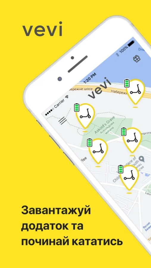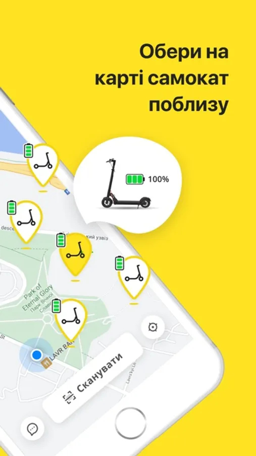 - Відкрий додаток і знайди найближчий vevi електросамокат на карті