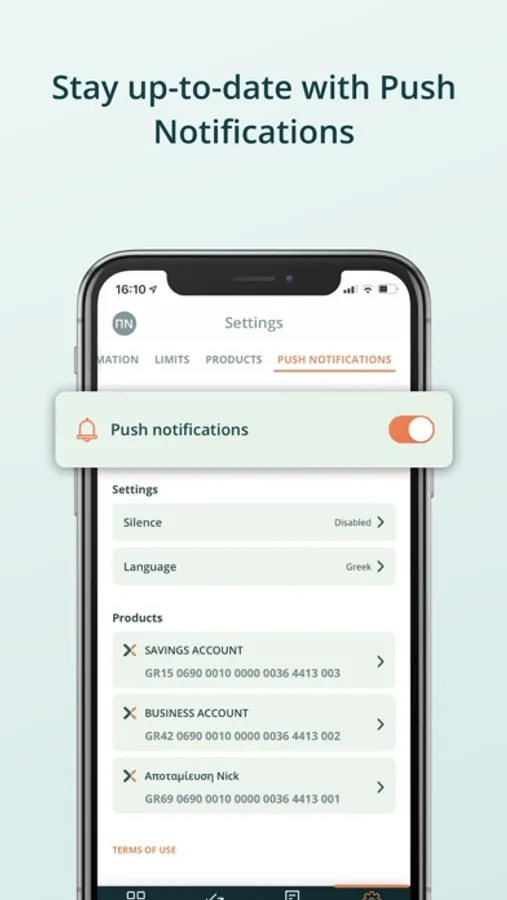 Check your balance and transaction history of accounts, cards, loans at a glance. Download account and loan transactions to your mobile device in .pdf document. Get informed about every transaction and change of accounts and cards balance by enabling push notifications. Pay your bills, taxes, credit cards of our bank or other Banks. Make a fast payment by entering an electronic payment code (RF CODE). Αuto fill the RF CODE by scanning Qr code/Barcode. Easily and quickly locate the payment you want to make, through smart categorization.