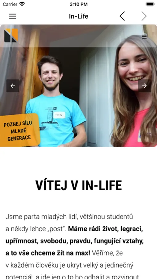 Táto aplikace vám umožní jednoduše vidět veškerý internetový obsah organizace In-Life. Můžete v ní najít informace z blogu, sociálních médií a taky webové stránky.