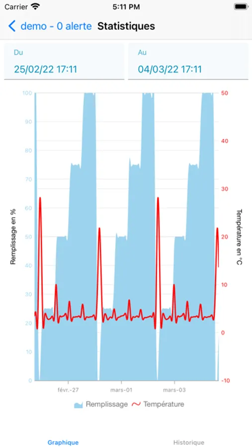 Avec MyRAINBOW, vous gardez un œil sur votre refroidisseur. Personnalisez vos alertes et recevez-les par notification, sms ou mail. My RAINBOW restitue des statistiques de fonctionnement et vous permet de garder en mémoire l'historique des données.