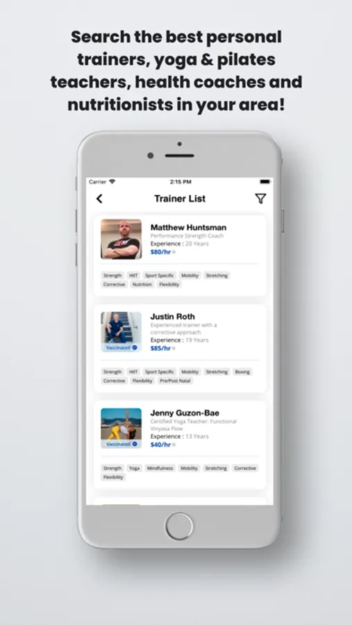 Search the app and compare the top personal trainers, Yoga and Pilates teachers,