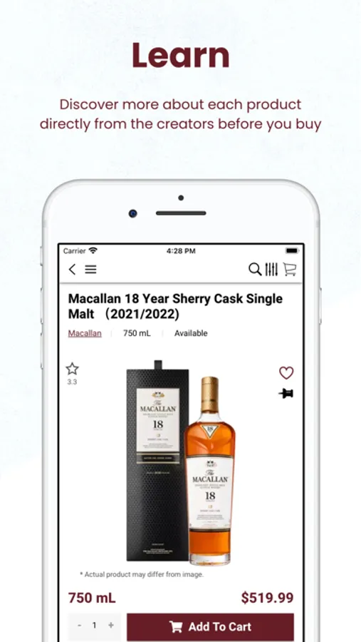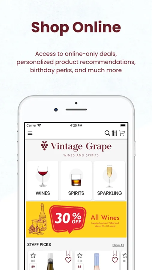With the App you can browse for the wines & spirits available in the store, and also order a delivery or pickup.