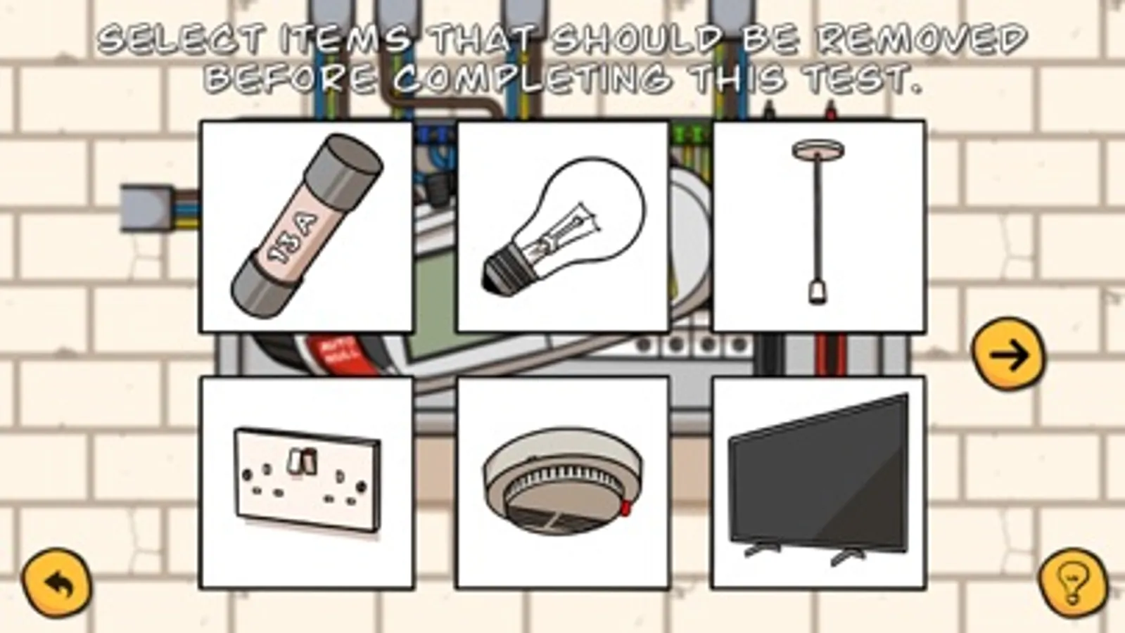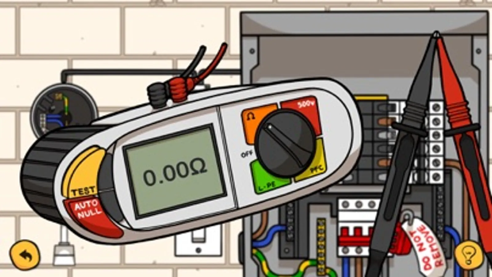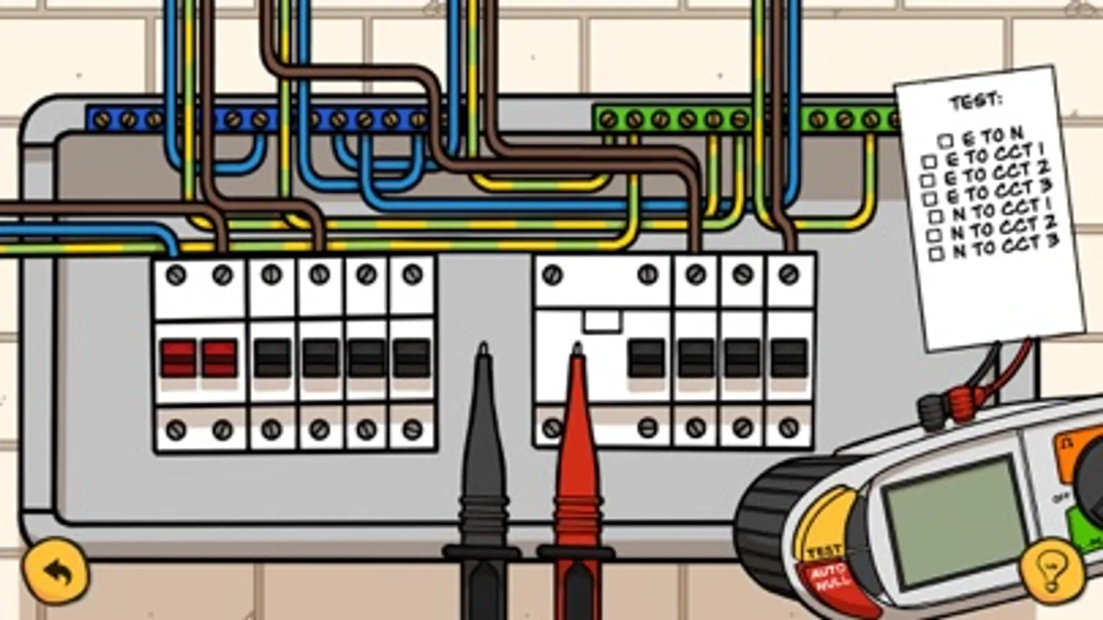 For each test there is an instructional video with Sparky Ninja describing and carrying out the steps involved. Then via a series of interactive tasks, you can practice by dragging and tapping the animated test instrument, distribution board and other equipment.
