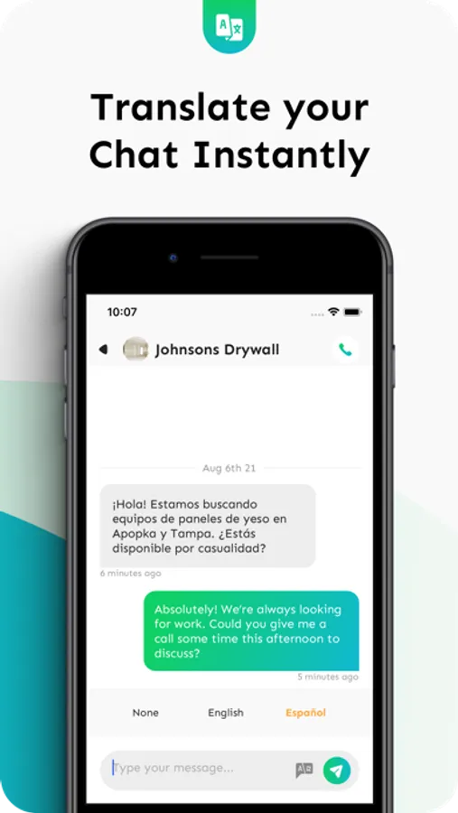 - Chat: Speak directly through the app using our English to Spanish translation features.