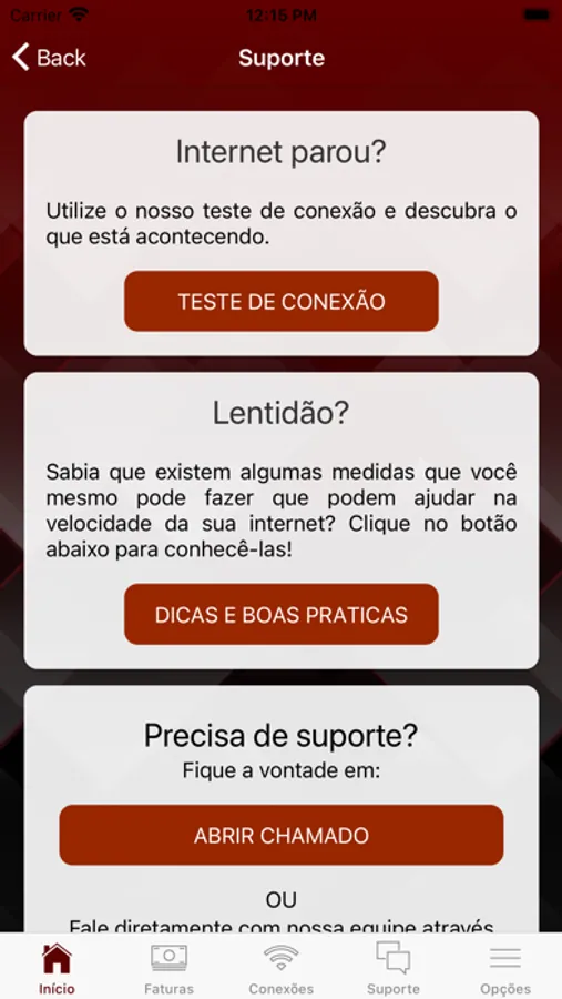 • Realização testes de conexão e velocidade;