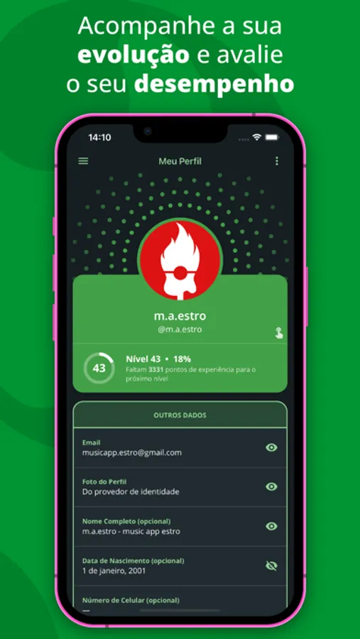 Além do design bonito e estimulante, Você evolui em experiência (XP) sempre que usar o app – podendo resolver desafios, participar de competições ou conquistar medalhas