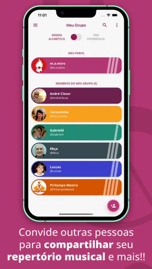 Convide outras pessoas para um ambiente de colaboração e competição, podendo compartilhar seu repertório musical e mais!