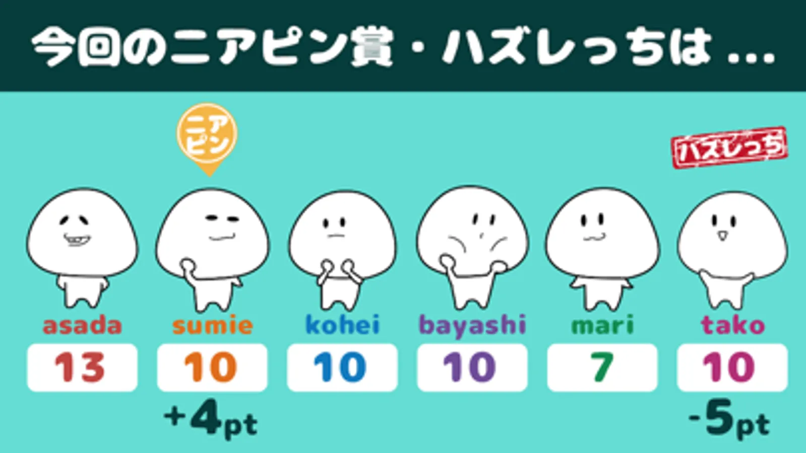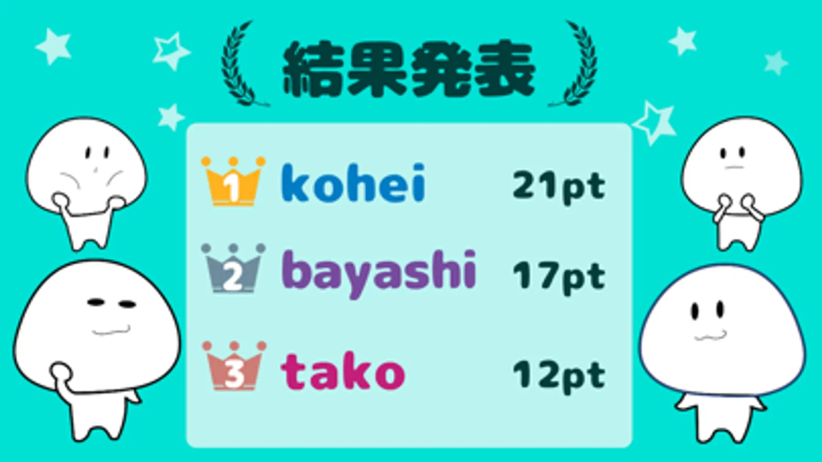 ここで投票数が多かった人のポイントがそれぞれ変動します。