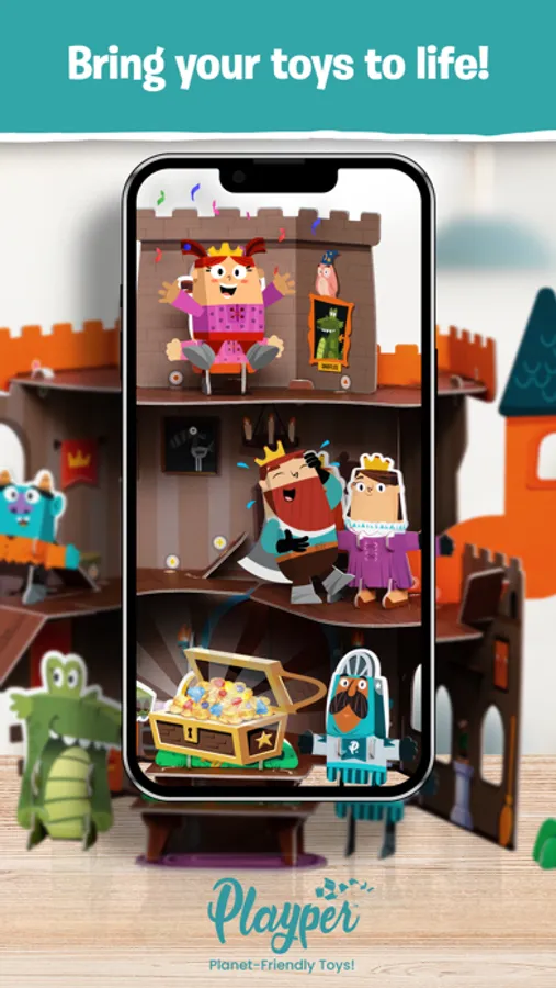 Scan your Playper toys to watch the Curious Kingdom come alive right on your tabletop. Get stories, educational learning games, and make your Magic Stickers come to life! Scan them all and get ready for silly fun! Counting pickle jars, searching for shapes, identifying colors, solving logic problems and more – it's all part of your planet-friendly playset, waiting to be unlocked with the free app.