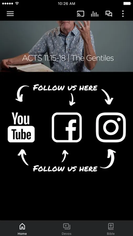 This app will help you stay connected with the day-to-day life of our church. With this app you can: watch or listen to past messages; stay up to date with push notifications; share your favorite messages via Twitter, Facebook, or email; and download messages for offline listening.