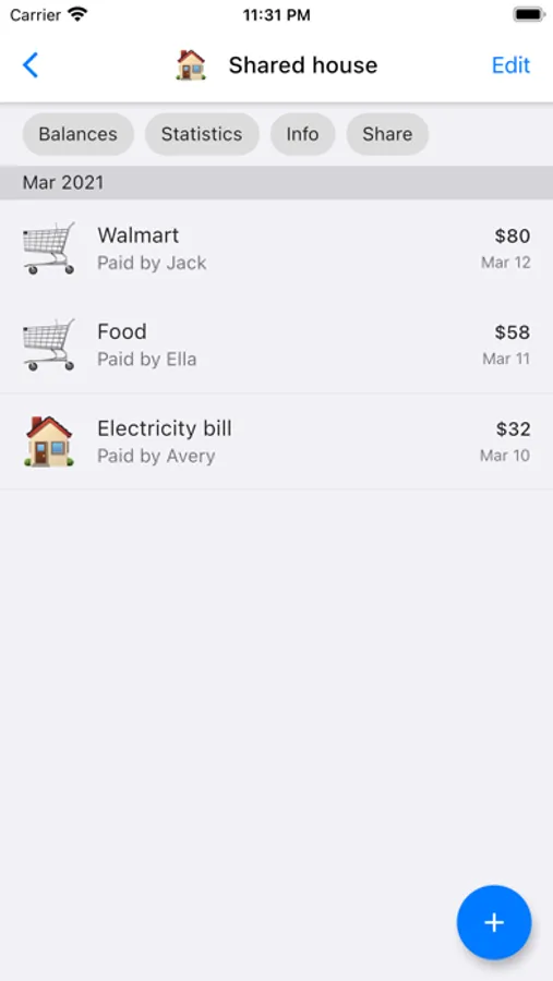 Create a group, and share your link with friends, everyone can add expenses to the groups.