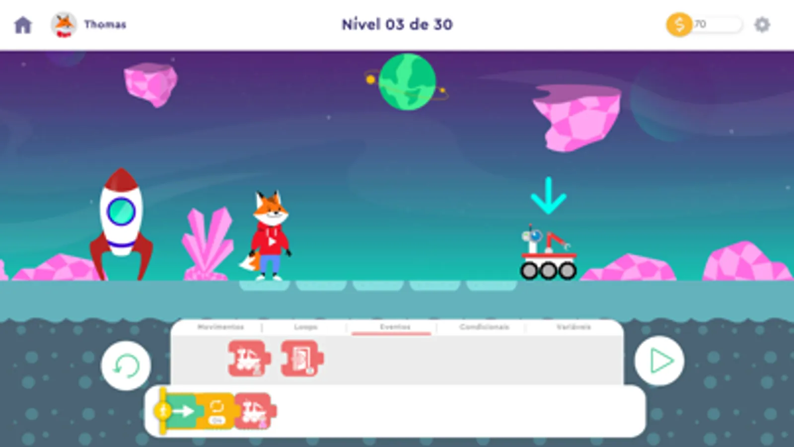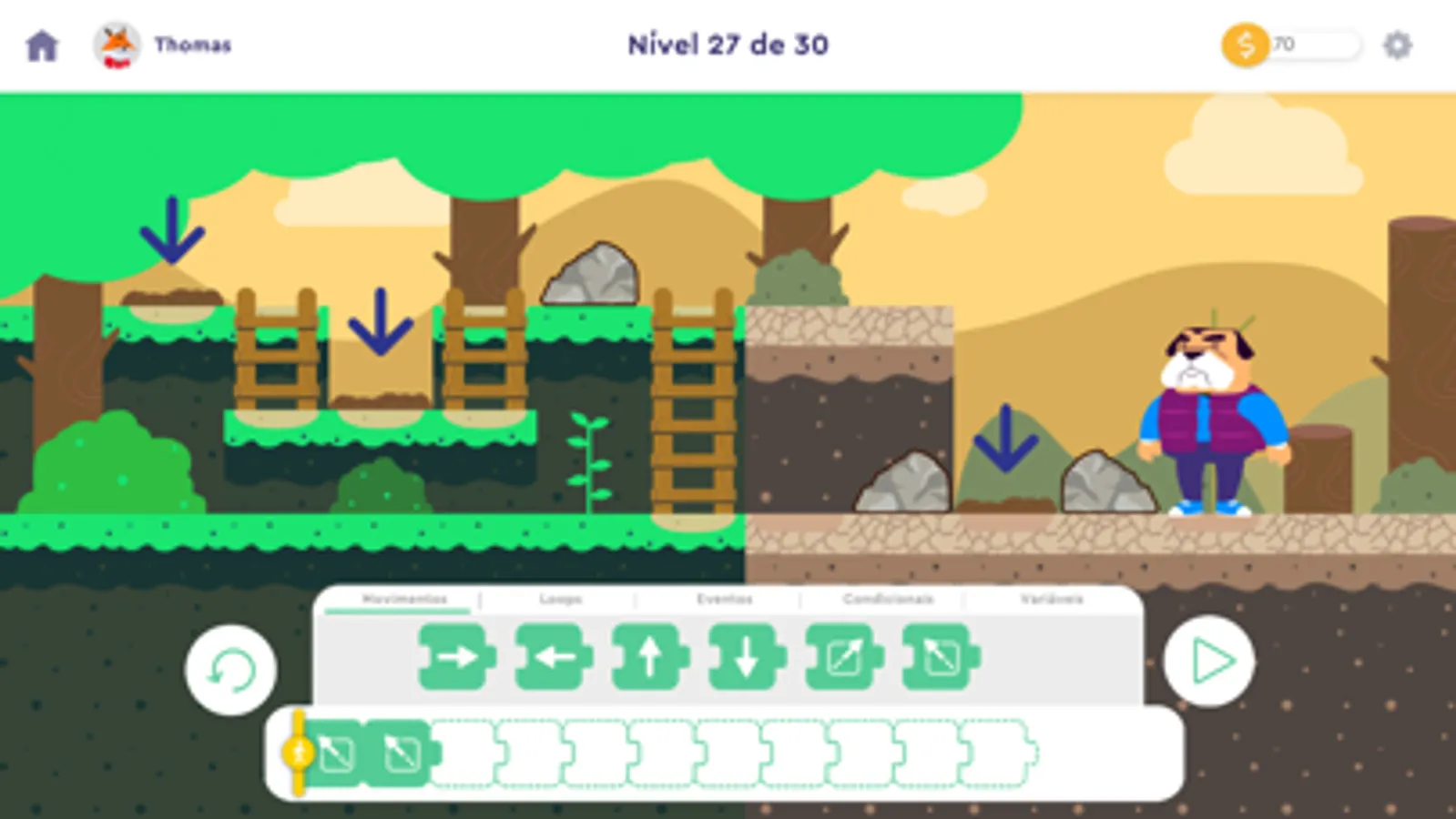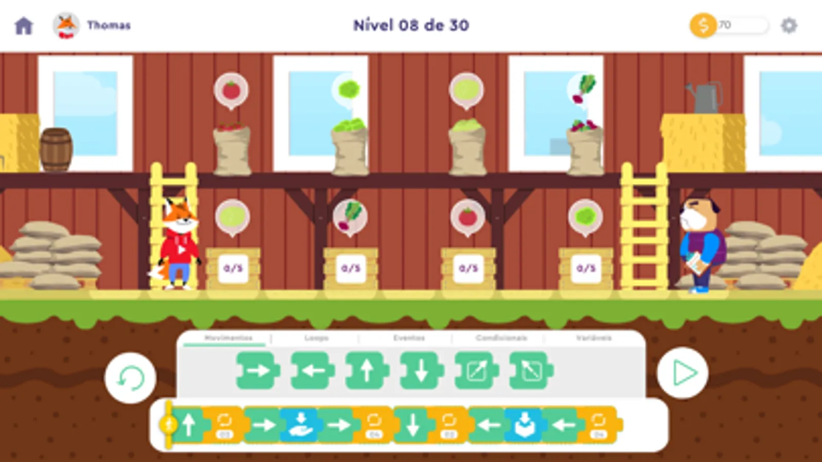 À medida em que as crianças avançam nas missões, elas aprendem, de maneira intuitiva, conceitos de: