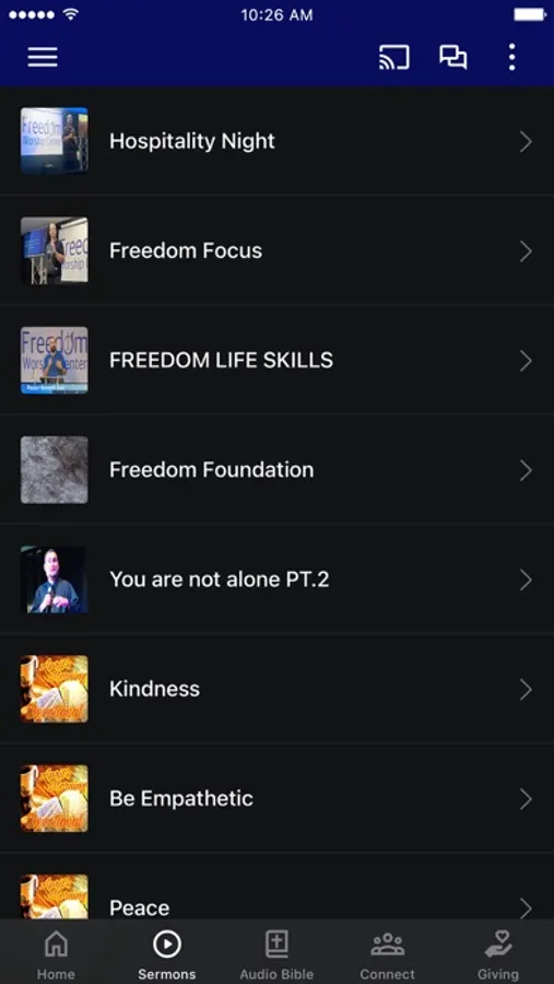 This app will help you stay connected with the day-to-day life of our church. With this app you can: watch or listen to past messages; stay up to date with push notifications; share your favorite messages via Twitter, Facebook, or email; and download messages for offline listening.