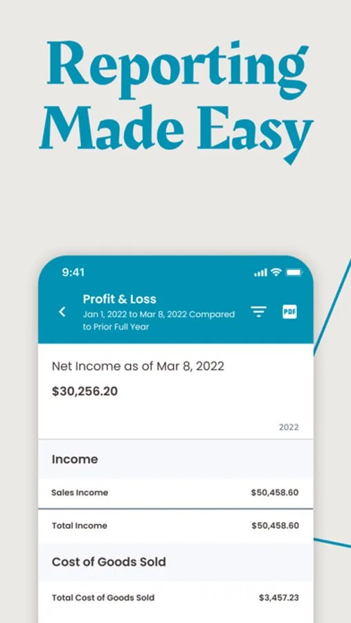 See your most critical business reports, like your profit and loss report, and download it as a PDF right from your device