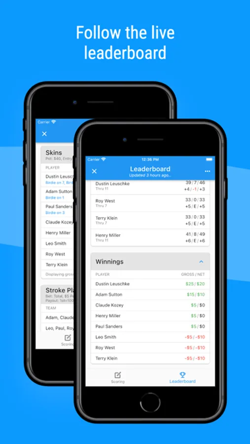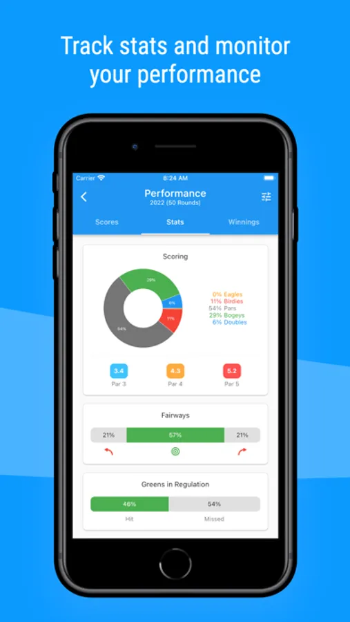 • Effortless scoring and betting that’s simpler to use than a paper scorecard.