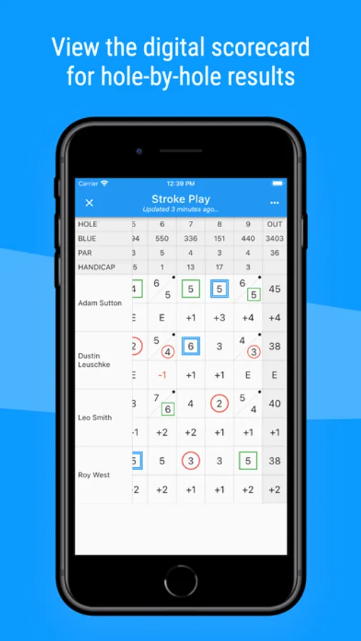 • Watch rounds played by your friends in complete detail, including hole-by-hole scoring information.