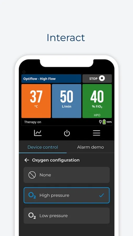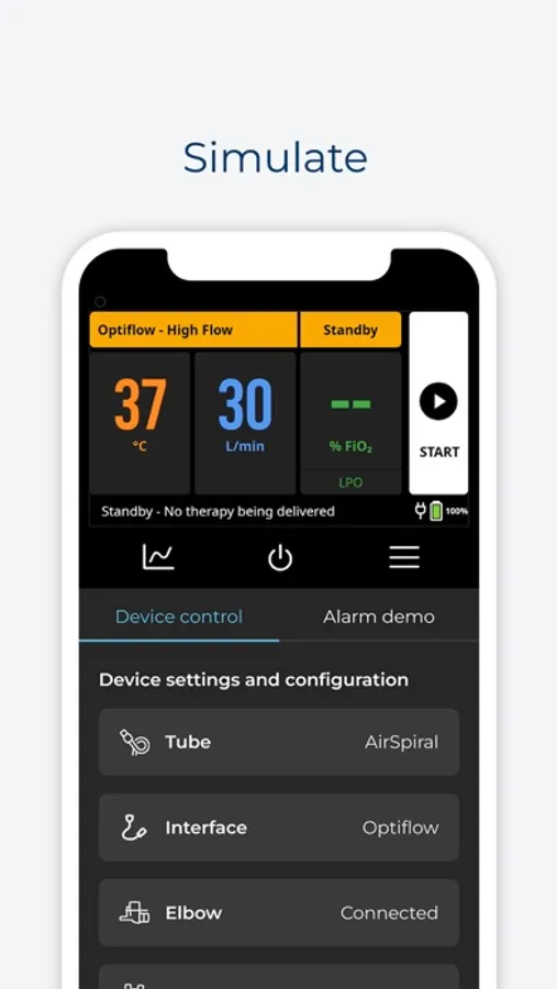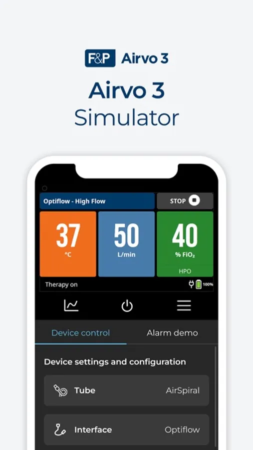 Note: This application is a demo of the Airvo 3 device for training purposes; it DOES NOT control the device in any way.
