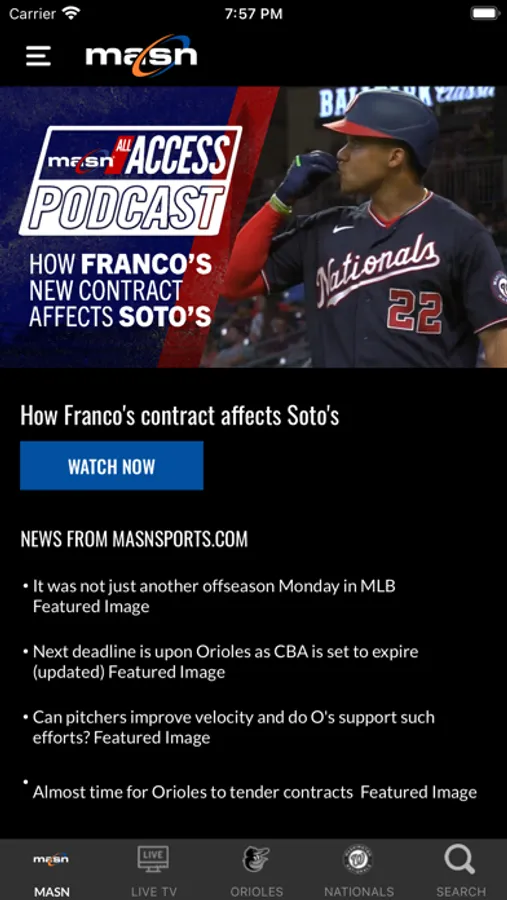 MASN provides maximum access coverage of the Baltimore Orioles and Washington Nationals.