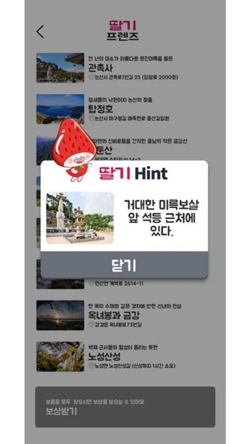 논산을 관광하기에 앞서 이 앱을 사용해보세요. 논산 8경에 대한 정보와 길찾기를 제공하며 딸기 프렌즈를 통해서 방문한 곳을 확인받고 선물을 받아보세요.