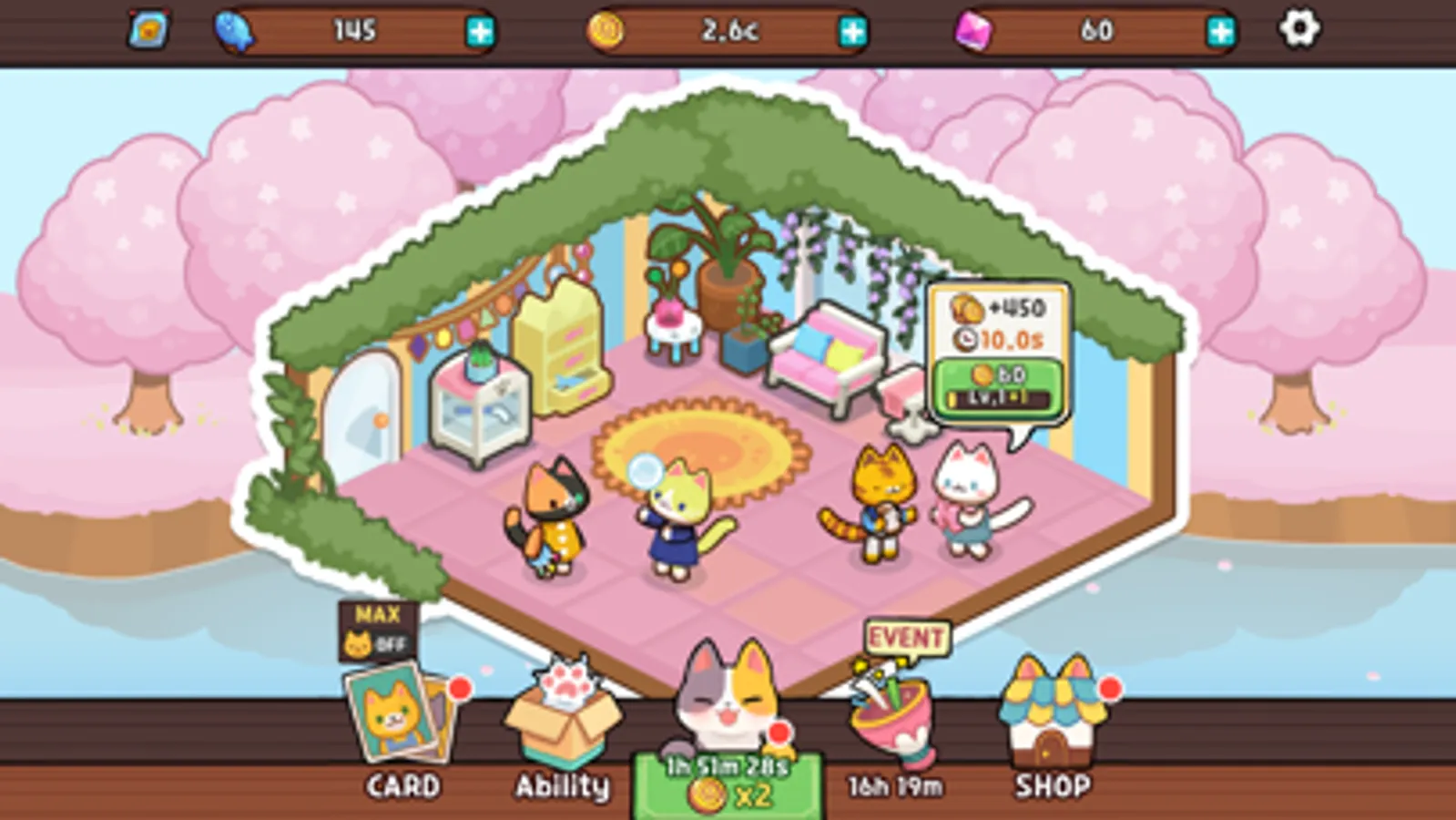 Completing all the procedures, You can collect Cat Coins to decorate cats!