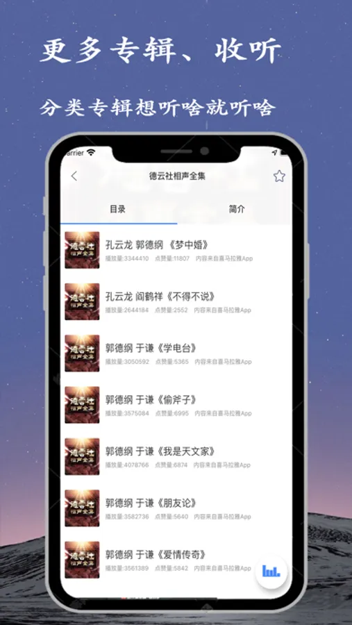 2、本App听小说、听相声、听音乐、听戏曲、听故事、听历史、听英语等等资源丰富。
