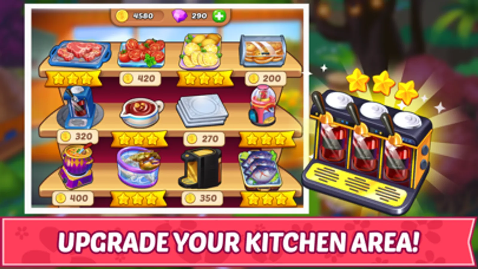 • Equip your chef with treats for customers, non-stick pans, bonus time and MORE!