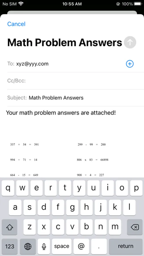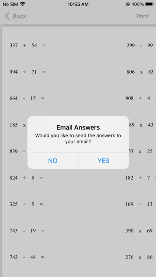 This app can not only generate work sheet for math practice problems together with answers in a separate sheet, but also let you take quizzes right in the app.
