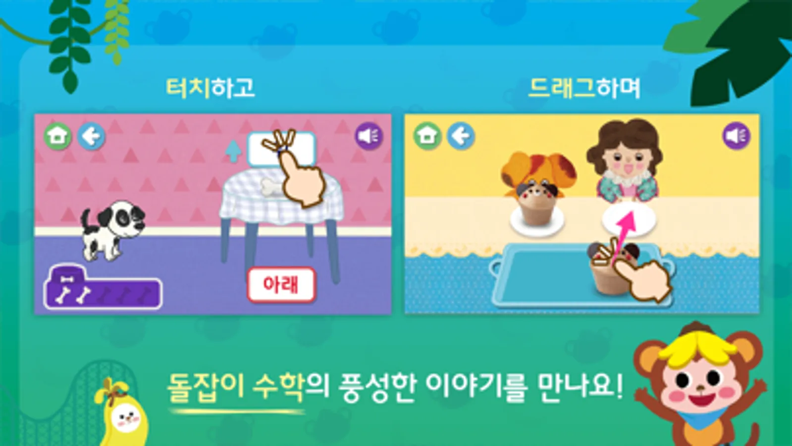 그림책으로 익혔던 내용들을 게임 활동을 통해 다시 한 번 살펴보고, 직접 터치하고, 움직여 보면서 재미있고 흥미롭게 수학 개념을 익힐 수 있습니다.