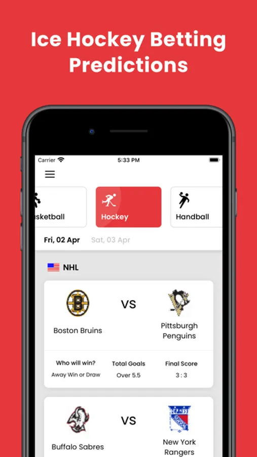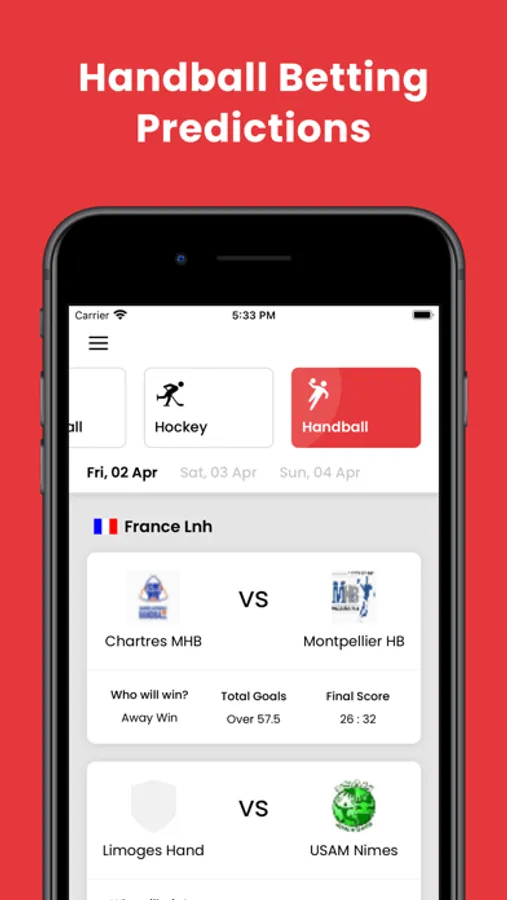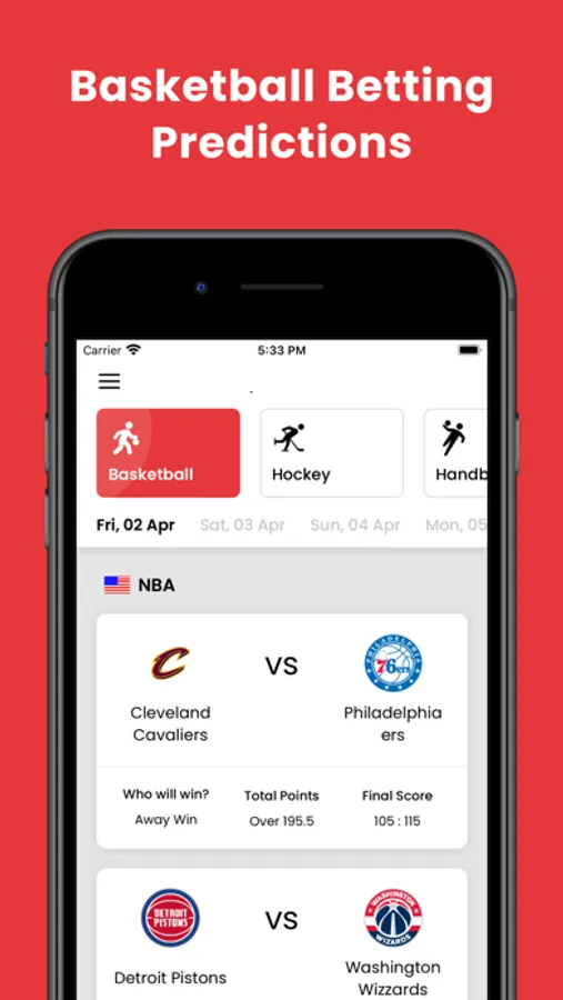 Over 500,000 pro betting clients, sportsbook wagerers, and sports betting enthusiasts trust our daily sports betting tips, betting predictions, sports betting odds, and fixtures. We provide professional betting tips for Basketball, Ice Hockey, and Handball that you can take to your favorite bookmaker or bookie. Each match simulation contains multiple betting tips such as home or away win, total points scored, and final result prediction.