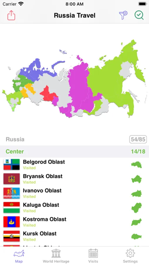 Create your own travel map marking regions & subdivisions of Russia where you've been!