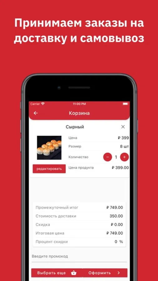Мобильное приложение позволяет оформить доставку заказа домой или в офис. С помощью данного приложения можно оформить заказ в 3 клика. Копить бонусные баллы. Сохранить личную информацию, чтобы в дальнейшем не тратить время на повторный ее ввод в бланк заказа. Добавляйте любимые блюда в избранное, следите за акциями, историей и статусом готовности своих заказов!
