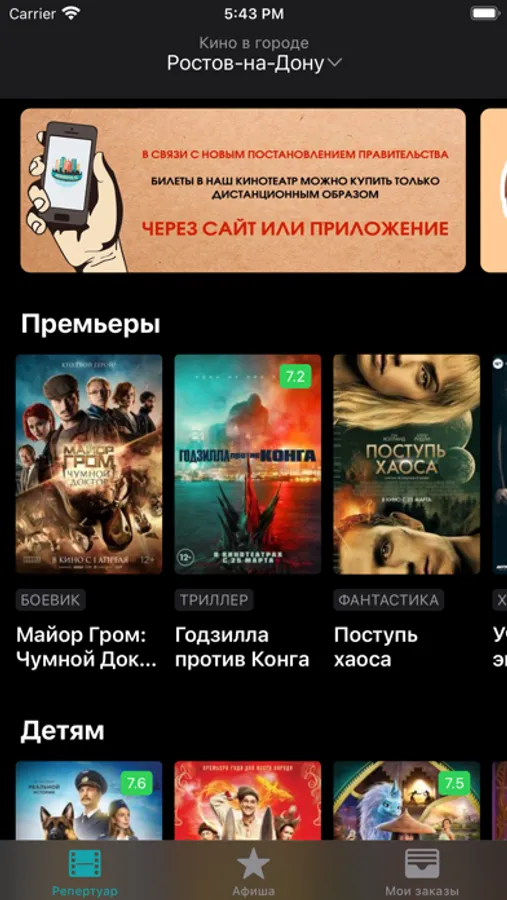 Ограничений для покупки нет. А еще нет наценки, комиссий и любых других накруток. Цена билета такая же, как в кассах кинотеатров: