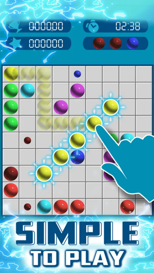 - For LINE mode: make score by arranging 5 or more balls of the same color consecutively in straight lines (vertically, horizontally or diagonally)