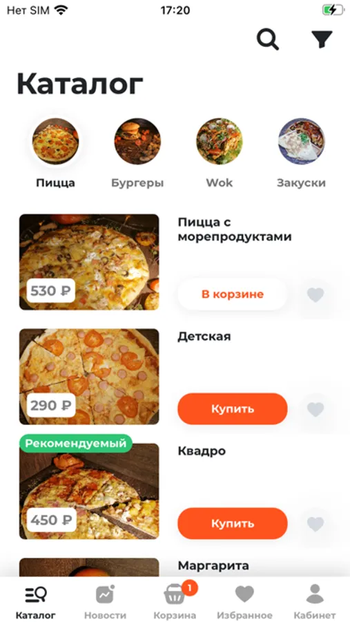 Мы предлагаем пиццу, бургеры, WOK, закуски, морсы и лимонады.