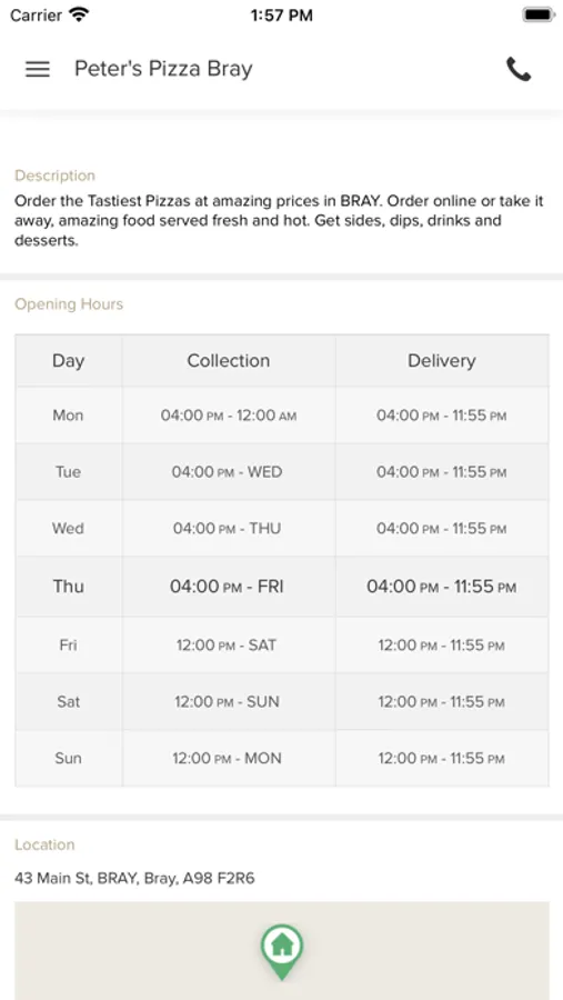 Thank you for visiting Peter's Pizza Bray in Bray. We hope you enjoy our online ordering app and your food.