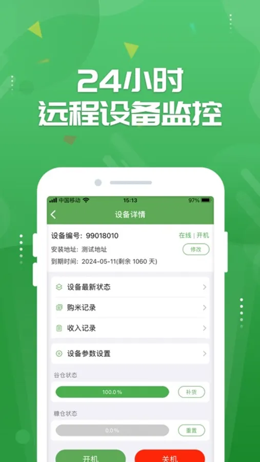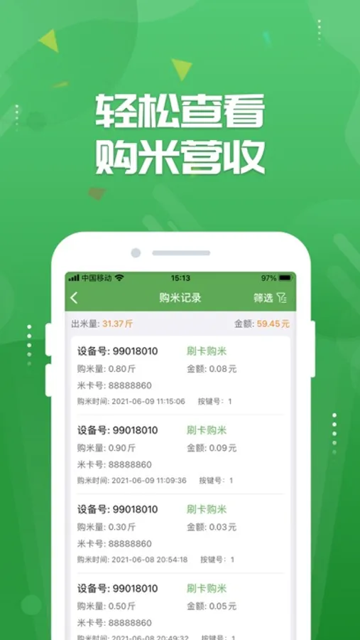 人人米站为物联网智能碾米机运营商提供远程移动式管理服务,让消费者享受到新鲜健康、优质放心的大米。应用简介:1. 在线办理米卡、米卡充值、挂失米卡,让米卡管理更方便。2. 实时查看设备状态、远程补货、设置售米价格,接收设备故障警报,操作简单更省心。3. 轻松查看购米记录,智能筛选购米明细,营收统计一目了然。