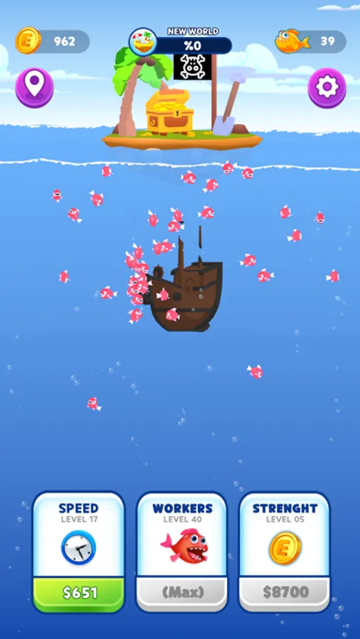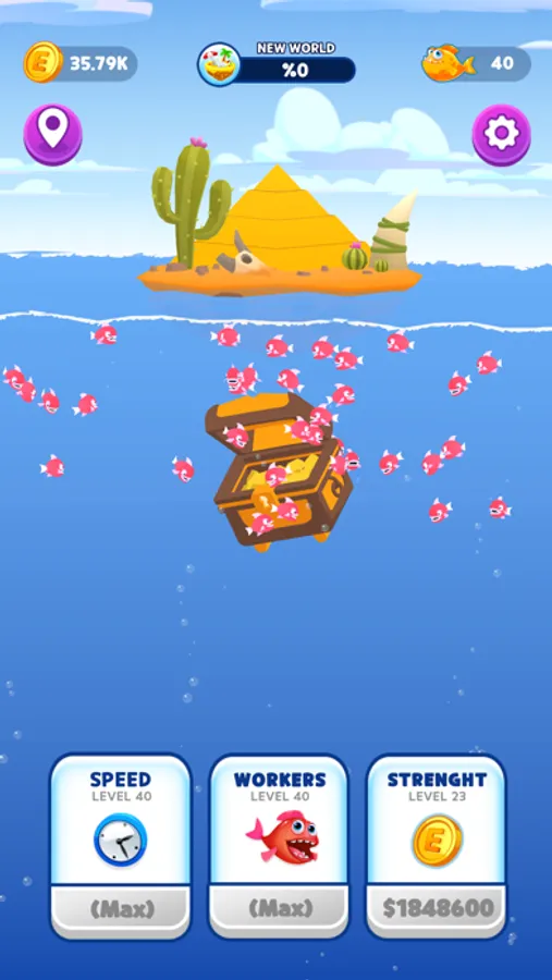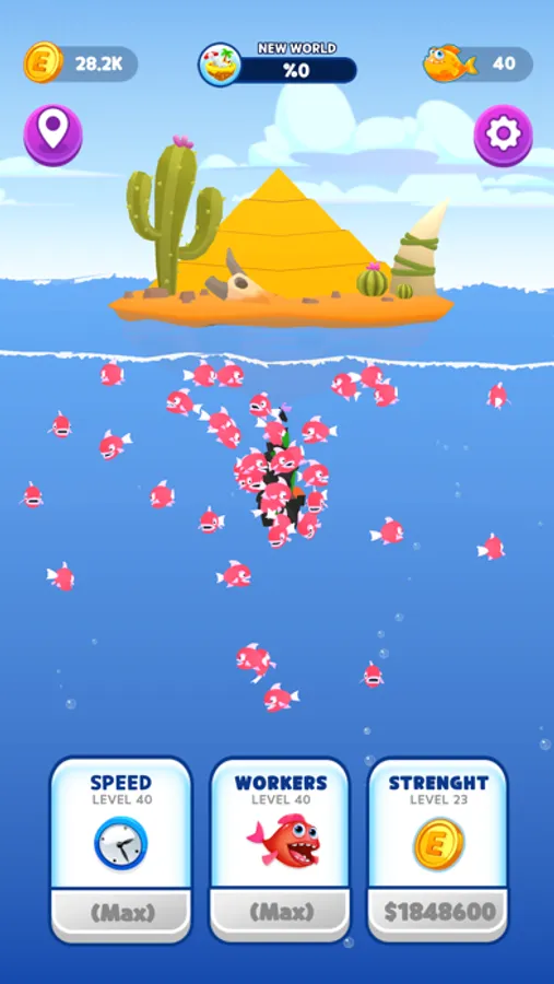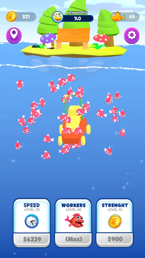 Hungry fishes are king of the seas. They are very hungry and want to eat everything. Also, they want to build their cities. Help them to be satisfied and build their towns.