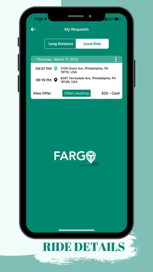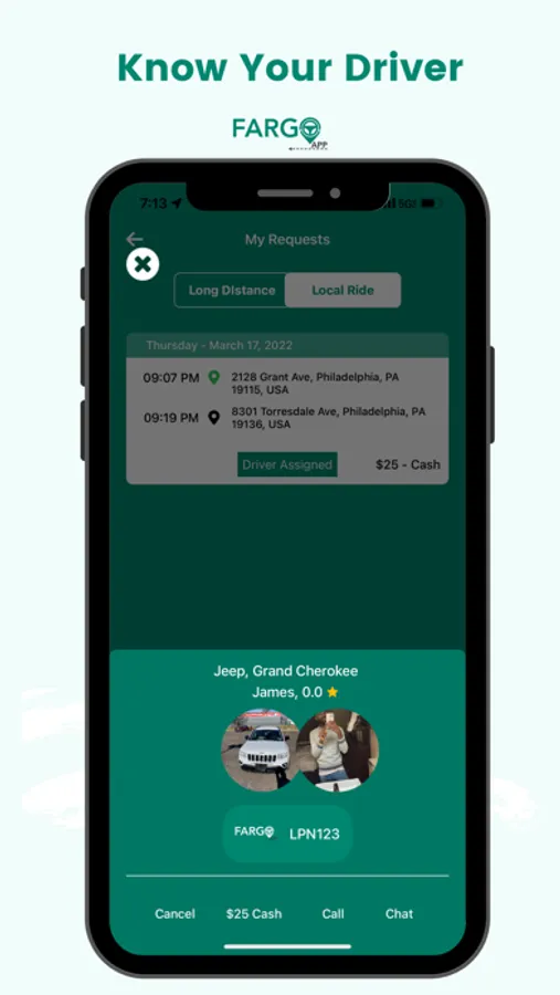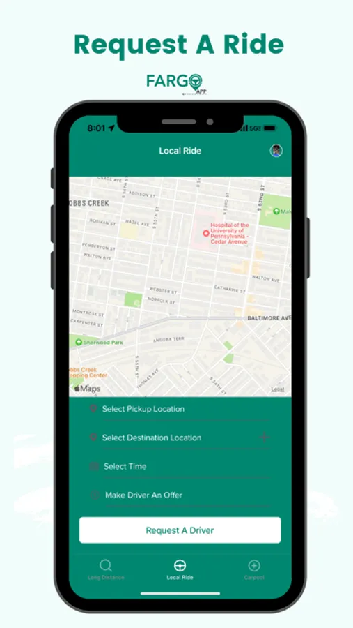 Fargo App is the leading cash-only rideshare app.Your search for a 'local ride service near me' just got a whole lot better. Fargo App is the latest rideshare platform to request local rides, arrange a carpool service, or find long-distance rides from drivers nearby, anywhere in the United States.
