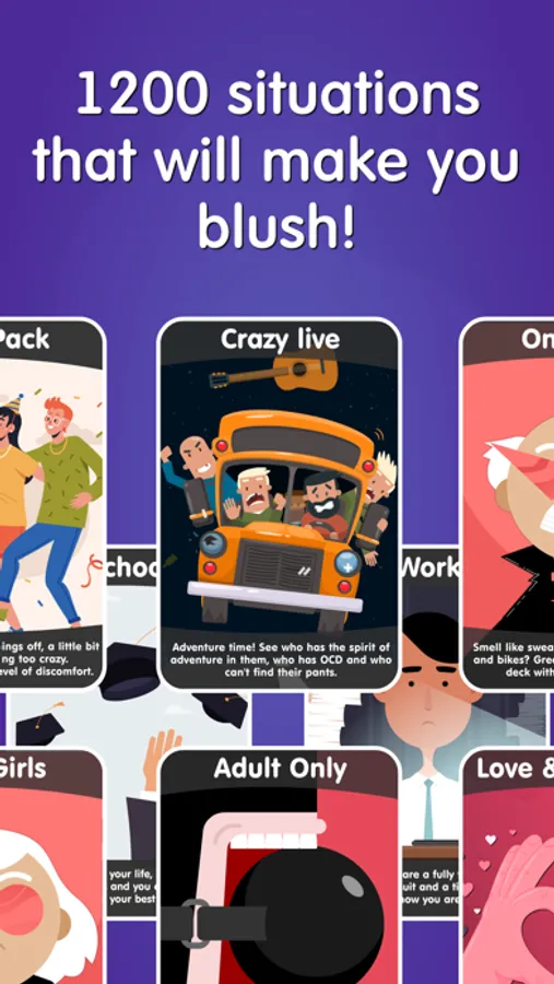 The goal of the game is to make the evening stop boring and turn into a wild night of revelations, memories and unforgettable stories!