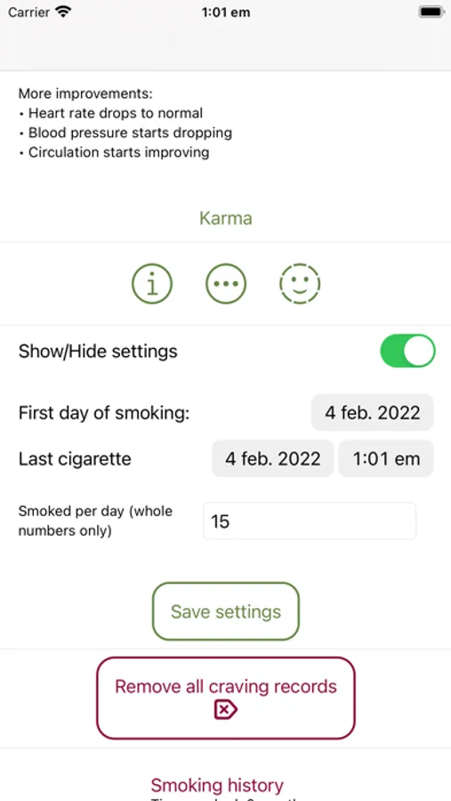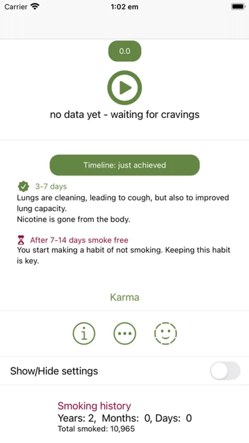 This is a bare-bones craving tracker app. We made this for ourselves with great results. With it, track your cravings and keep your self occupied when the craving occurs. All you need to do is to count down the time and you are free. Always consult a health professional/your doctor with anything related to health.