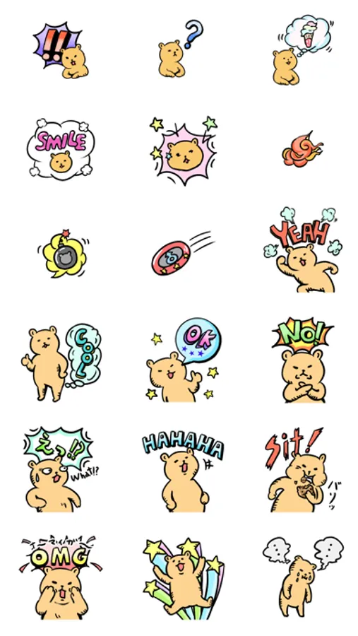 大好評ポップでキュートなアメコミ風くまのスタンプ。全33種類で日々の気持ちを楽しく伝えよう!