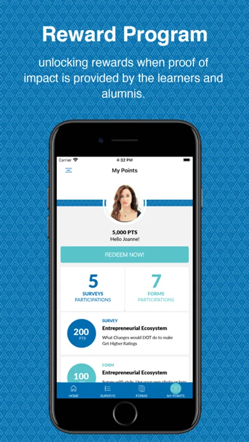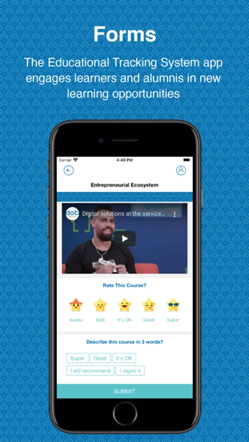 The Educational Tracking System app engages learners and alumni in new learning opportunities, as well as unlocking rewards when proof of impact is provided by the learners and alumni.