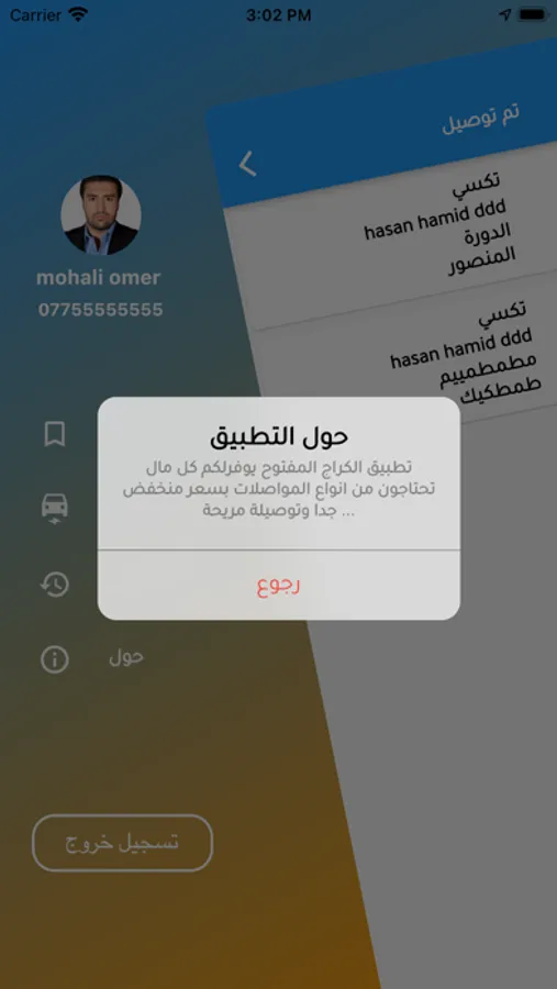 تطبيق خدمي لاستلام الاشعارات من الزبون و توصيله للمكان المحدد من قبله والعمل ع راحة الزبون و استغلال الوقت في التوصيل
