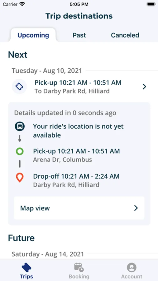 ▪ Empower riders with direct access to review and manage their trips ▪ View upcoming and completed trips, easily cancel trips
