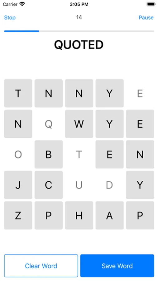 Tap the tiles on the board to form words. Make as many words as you can before the timer runs out.