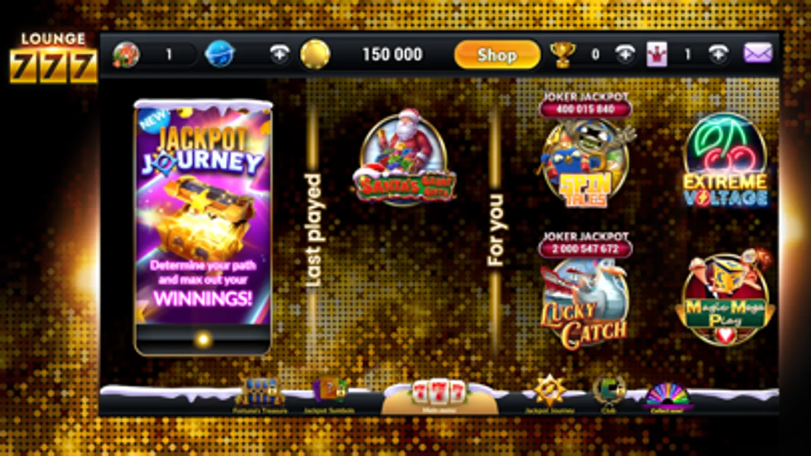 Play your favorite slots from your casino, arcade, and gaming hall! There's a ton of fun to be had with slots such as Ramses Book, Fancy Fruits, Super Duper Cherry & a whole lot more! Download Lounge777 now and pick up a start-up bonus of 150 000 Chips.